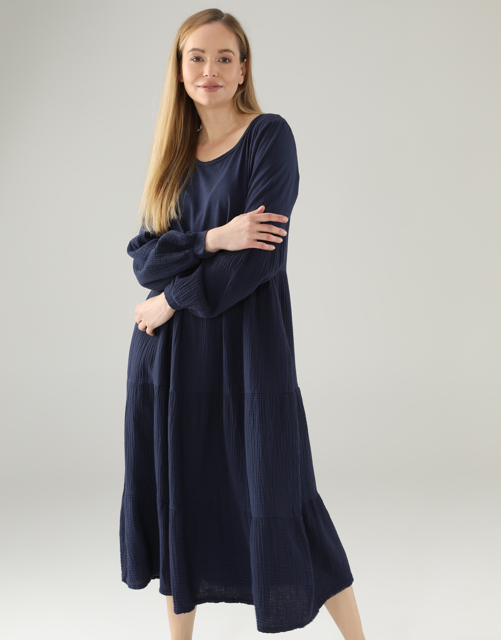 • Granatowa sukienka wykonana z miękkiej tkaniny w 100% z bawełny