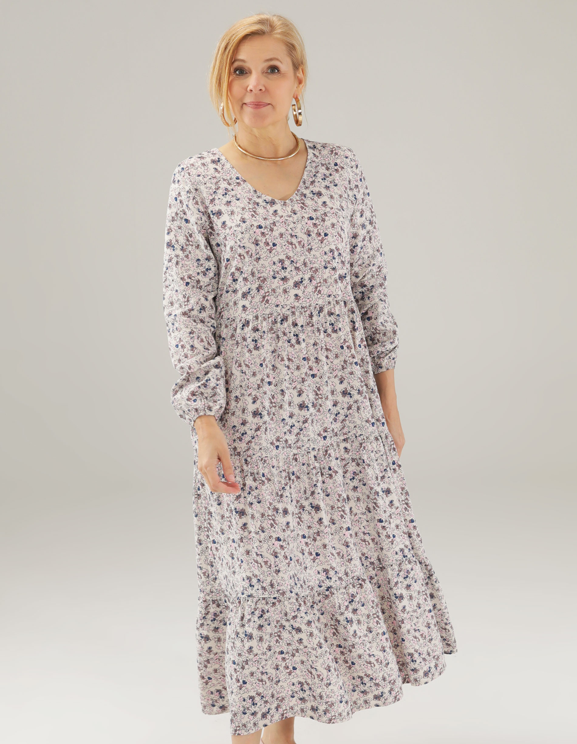 Beżowa sukienka w kwiaty