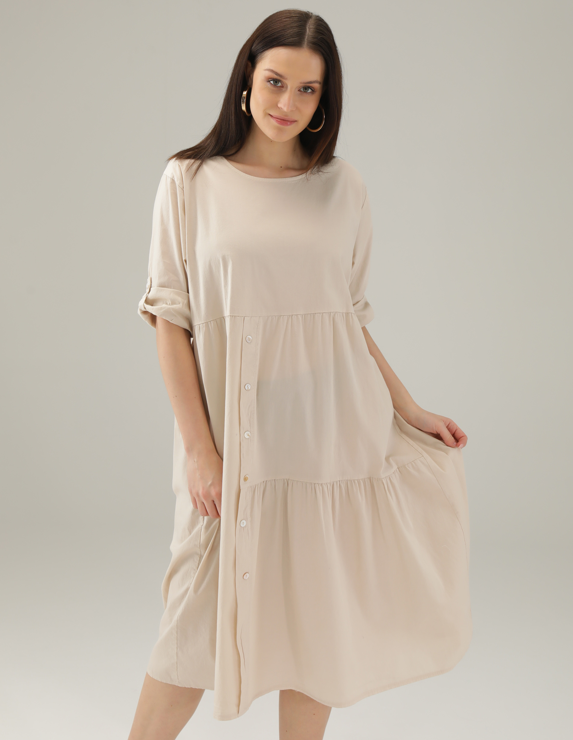 • Sukienka o luźnym i rozkloszowanym fasonie, wykonana z cienkiej bawełny