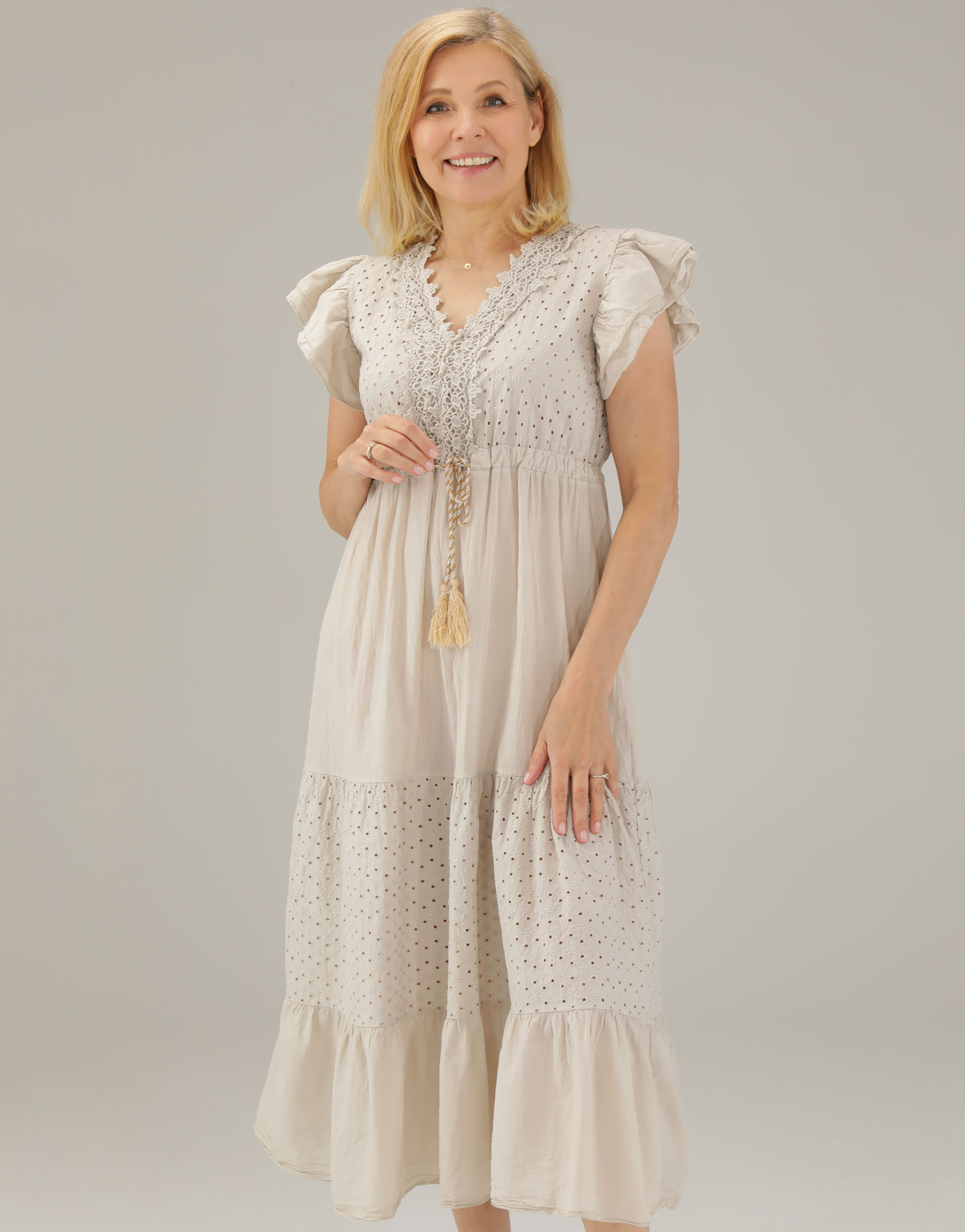 Beżowa sukienka z falbanami