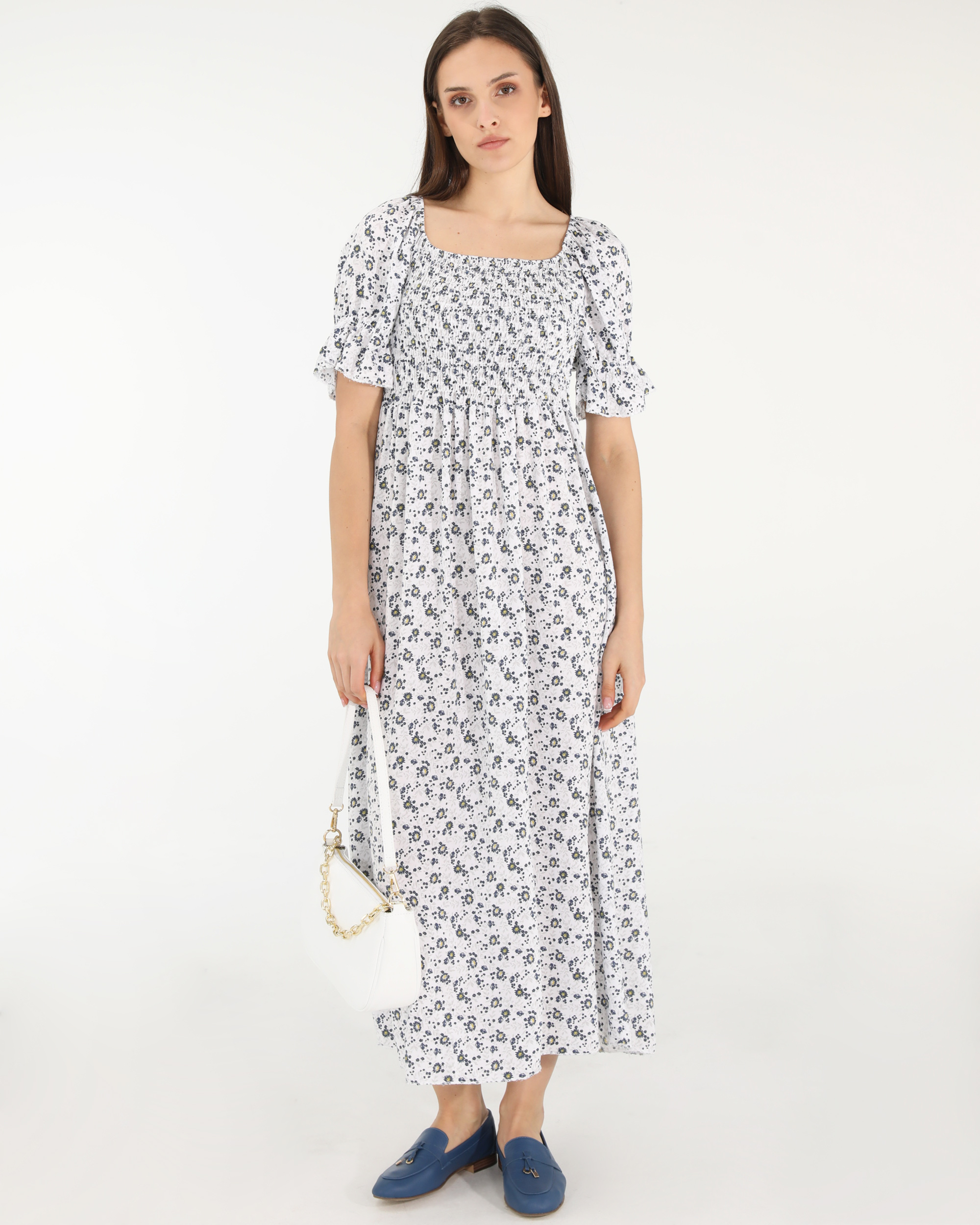 Biała sukienka w drobne kwiaty