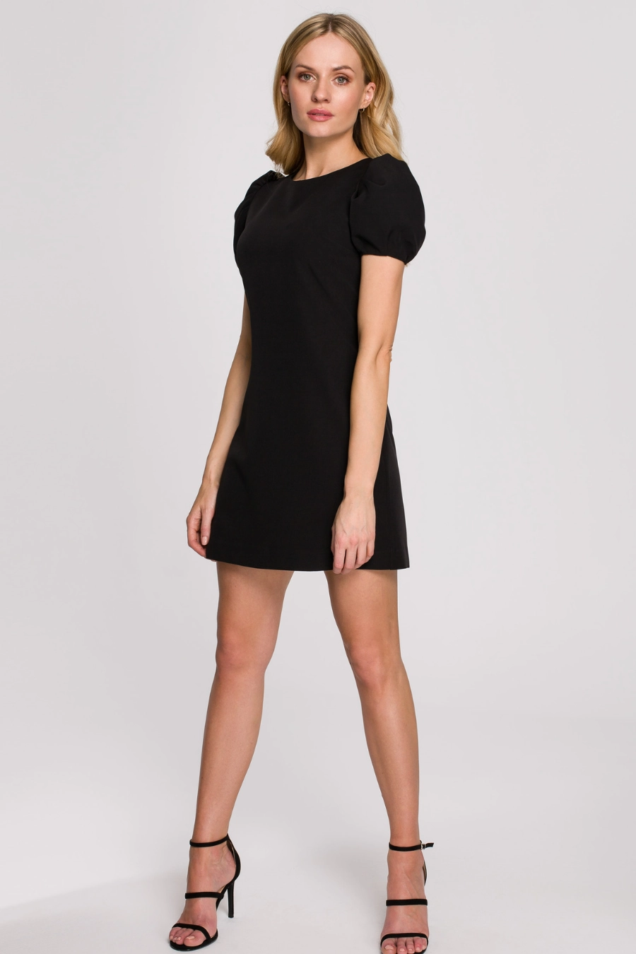Podoba Ci się Elegancka sukienka mini krótkie bufiaste rękawy czarna?