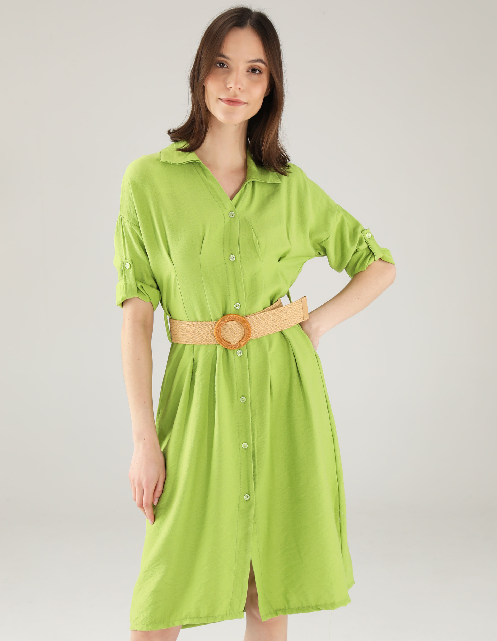 • Zielona sukienka wykonana z przyjemnego w dotyku materiału