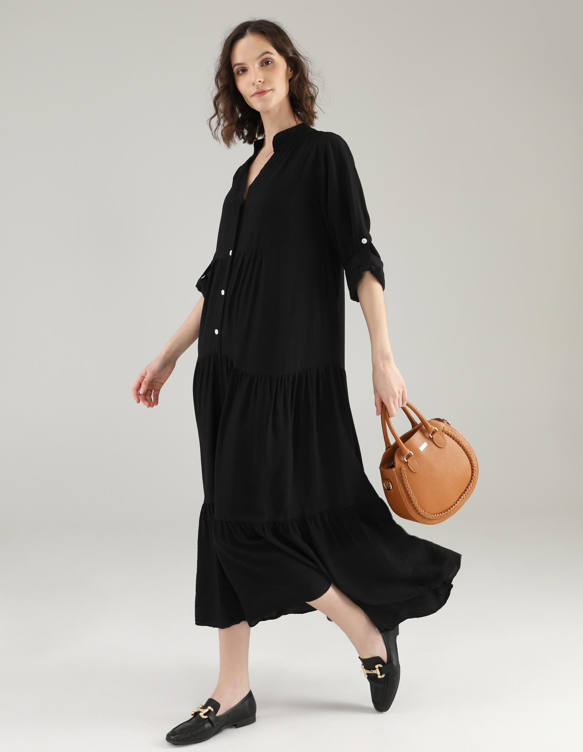 • Czarna sukienka wykonana z przewiewnej tkaniny w 100% z wiskozy