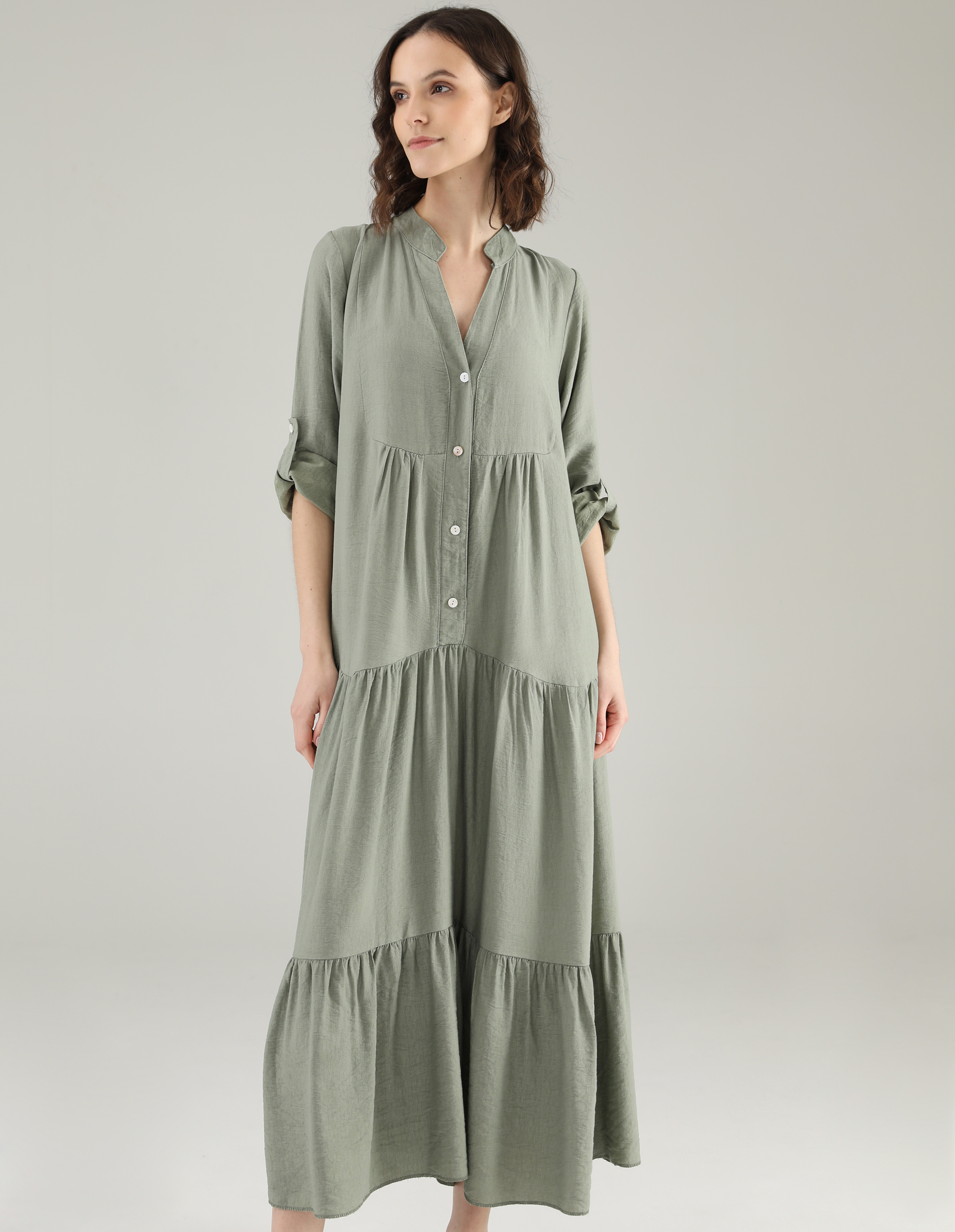 Zielona sukienka wykonana z przewiewnej tkaniny w 100% z wiskozy