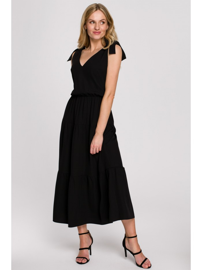 K092 Sukienka z wiązanymi ramiączkami – czarna