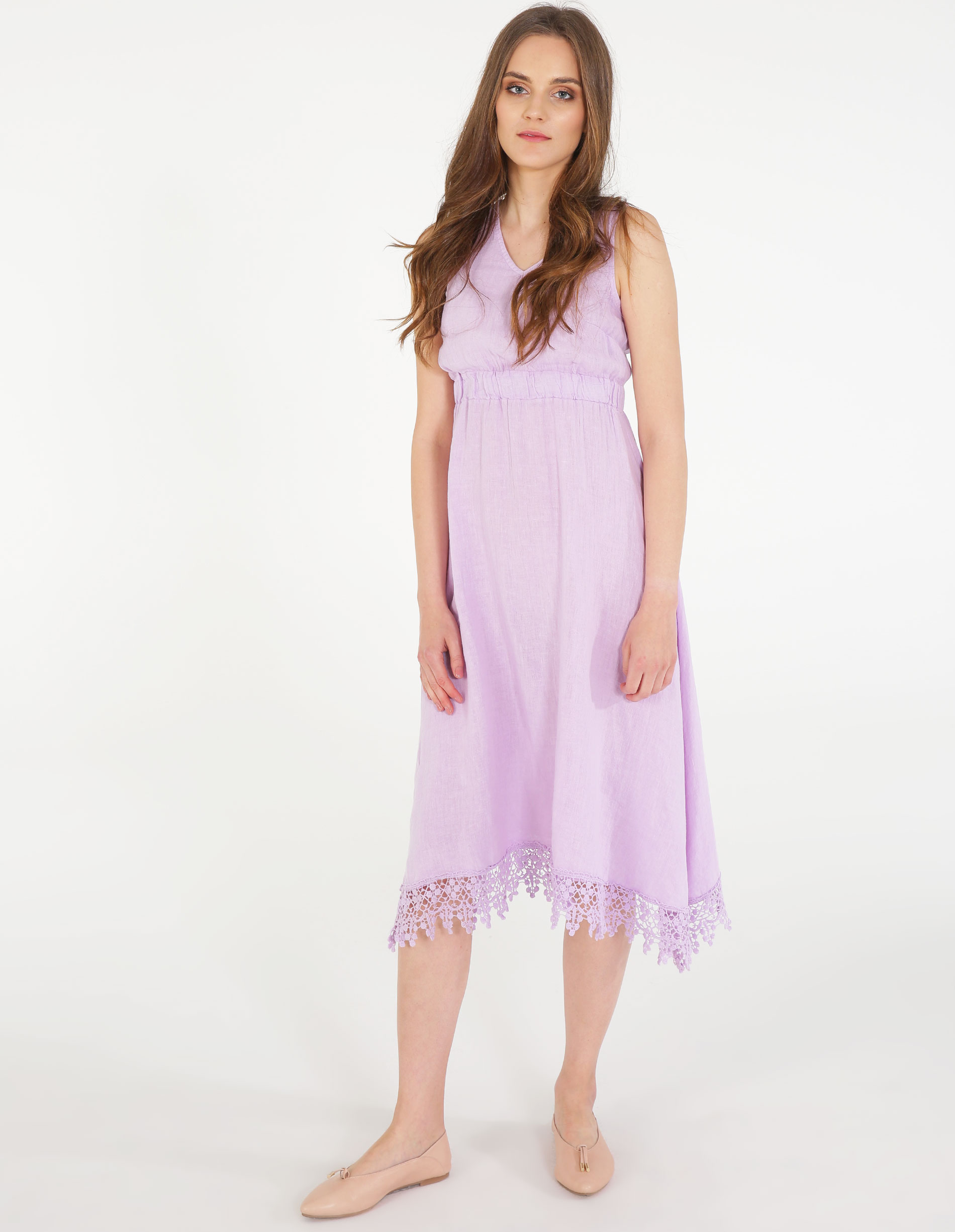 Lniana sukienka z koronką