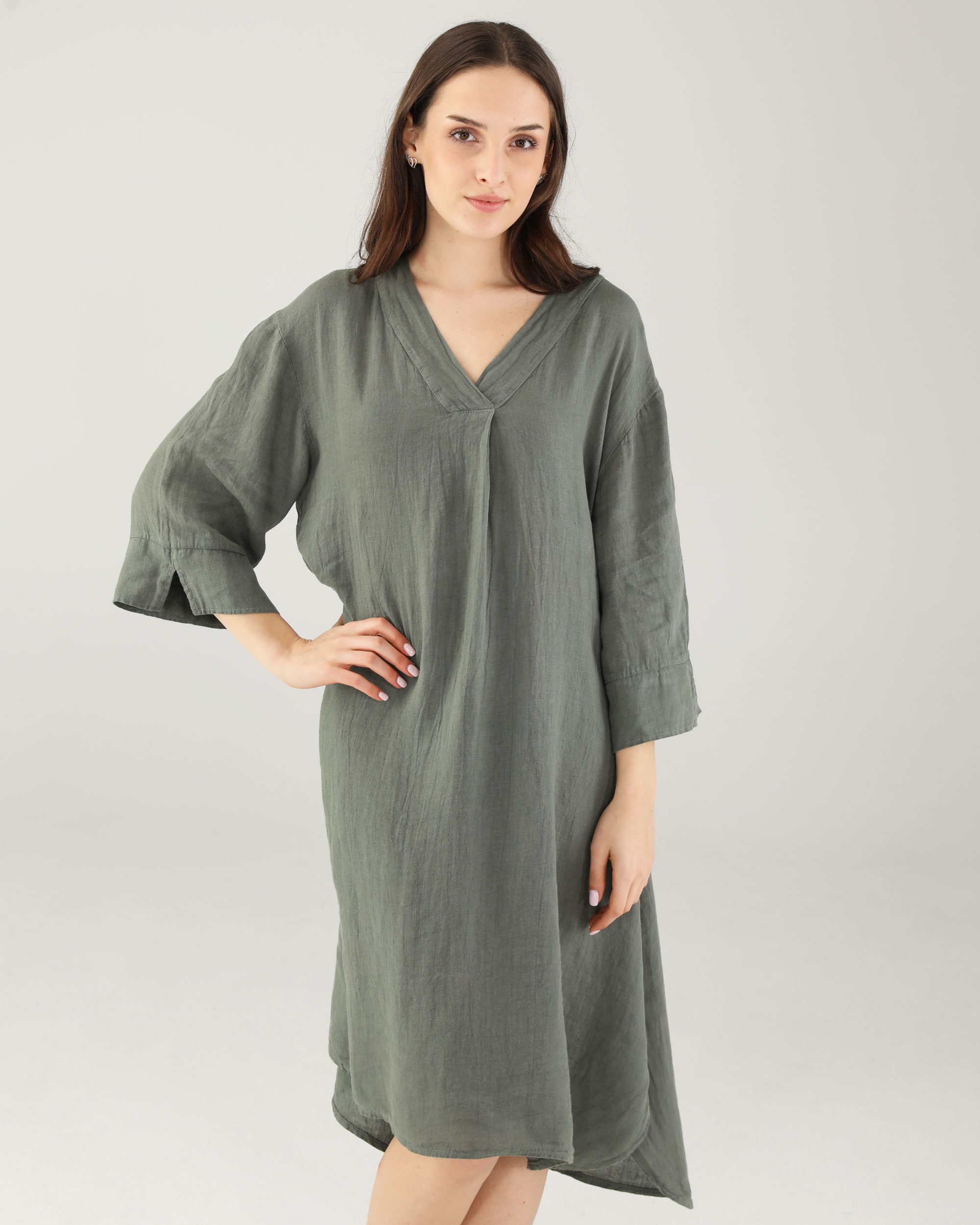 • Gładka sukienka wykonana z cienkiej tkaniny w 100% z lnu