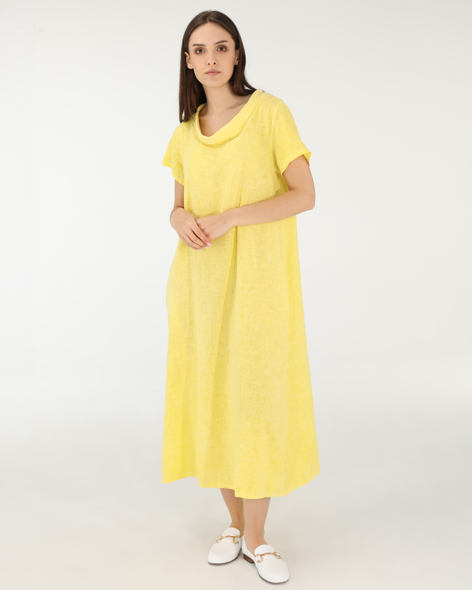 • Gładka sukienka wykonana z cienkiej tkaniny na bazie lnu i bawełny