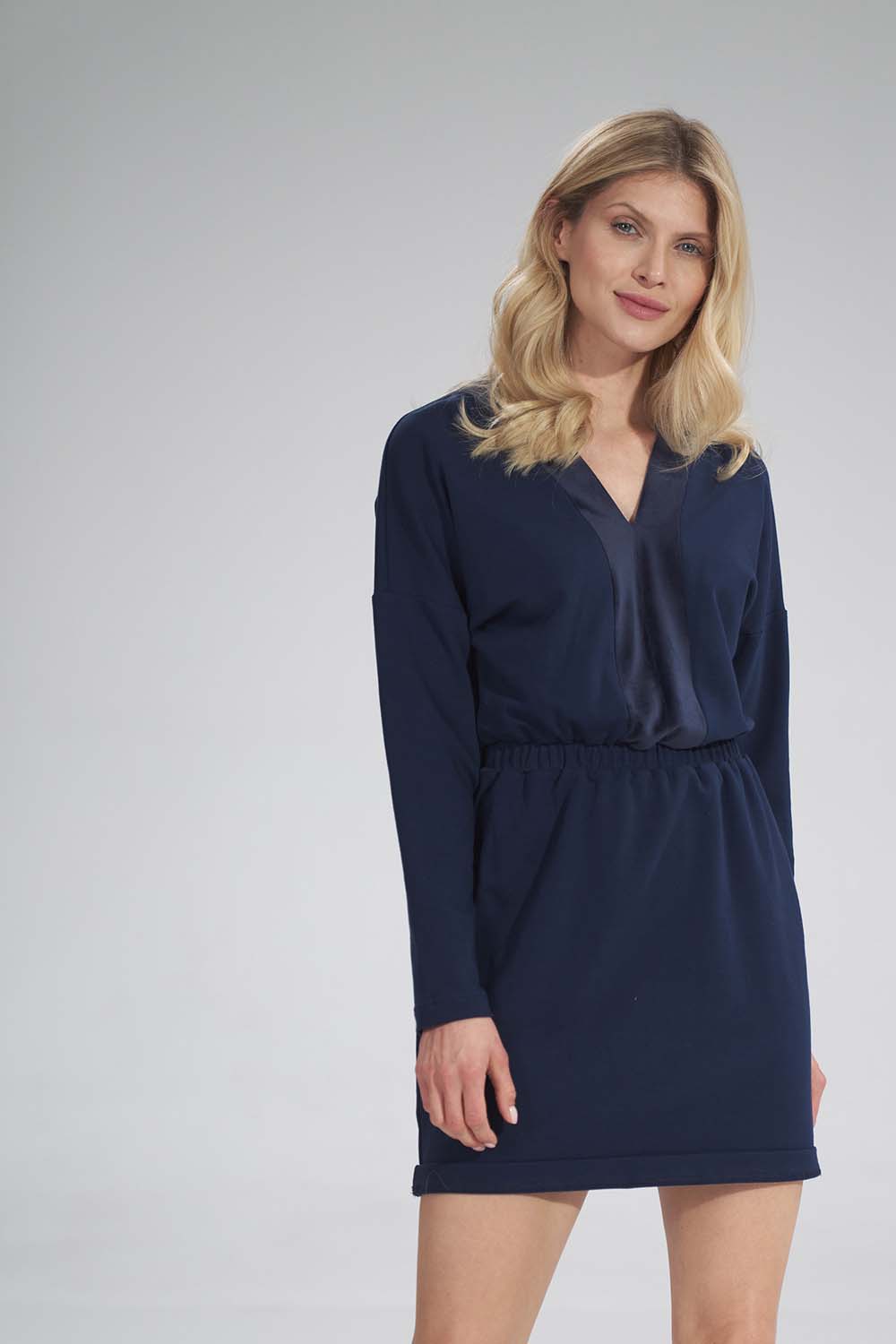 Podoba Ci się Mini Sukienka z Dekoltem Wykończonym Welurem – Granatowa?