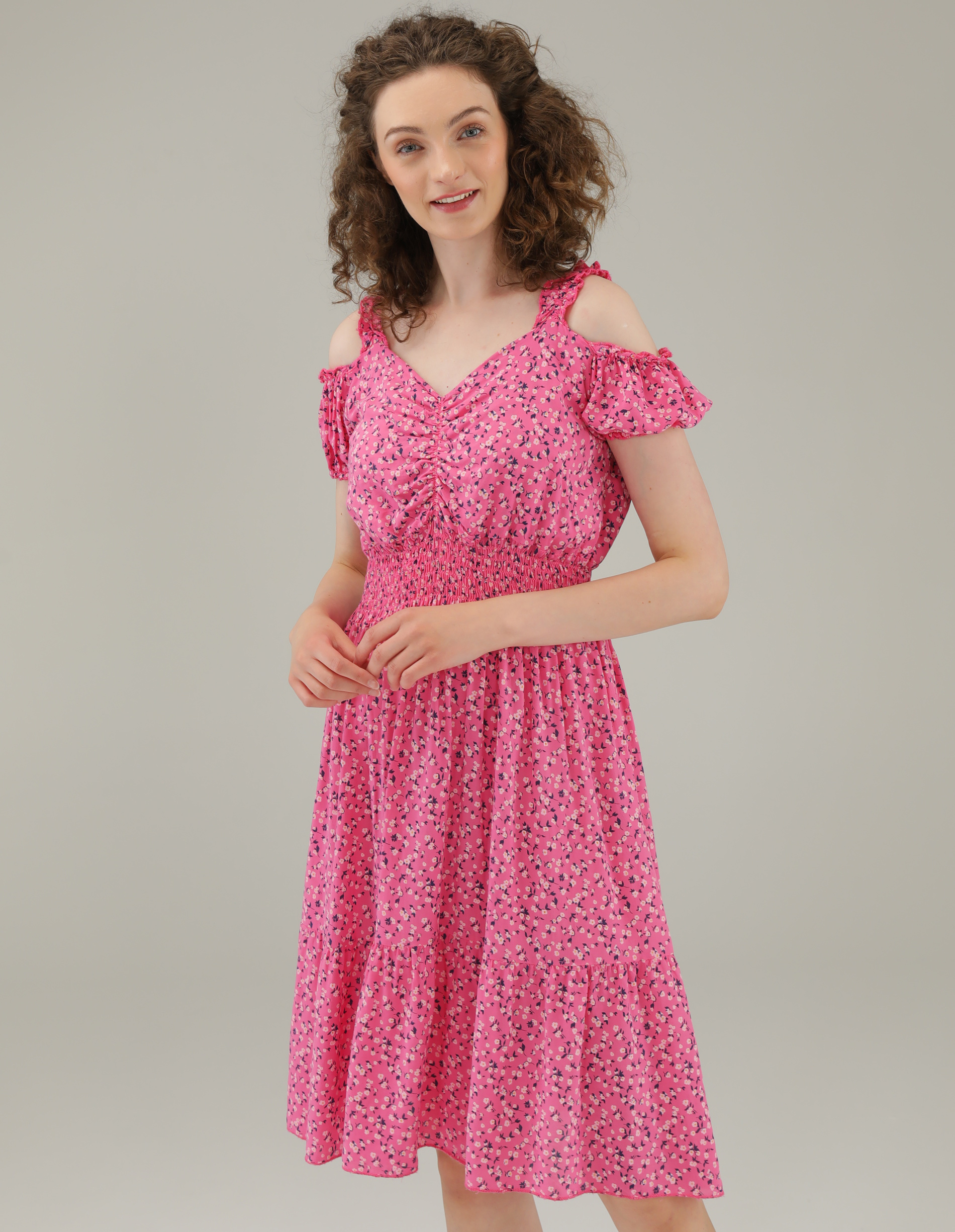 • Sukienka o rozkloszowanym kroju, wykonana z przewiewnej wiskozy