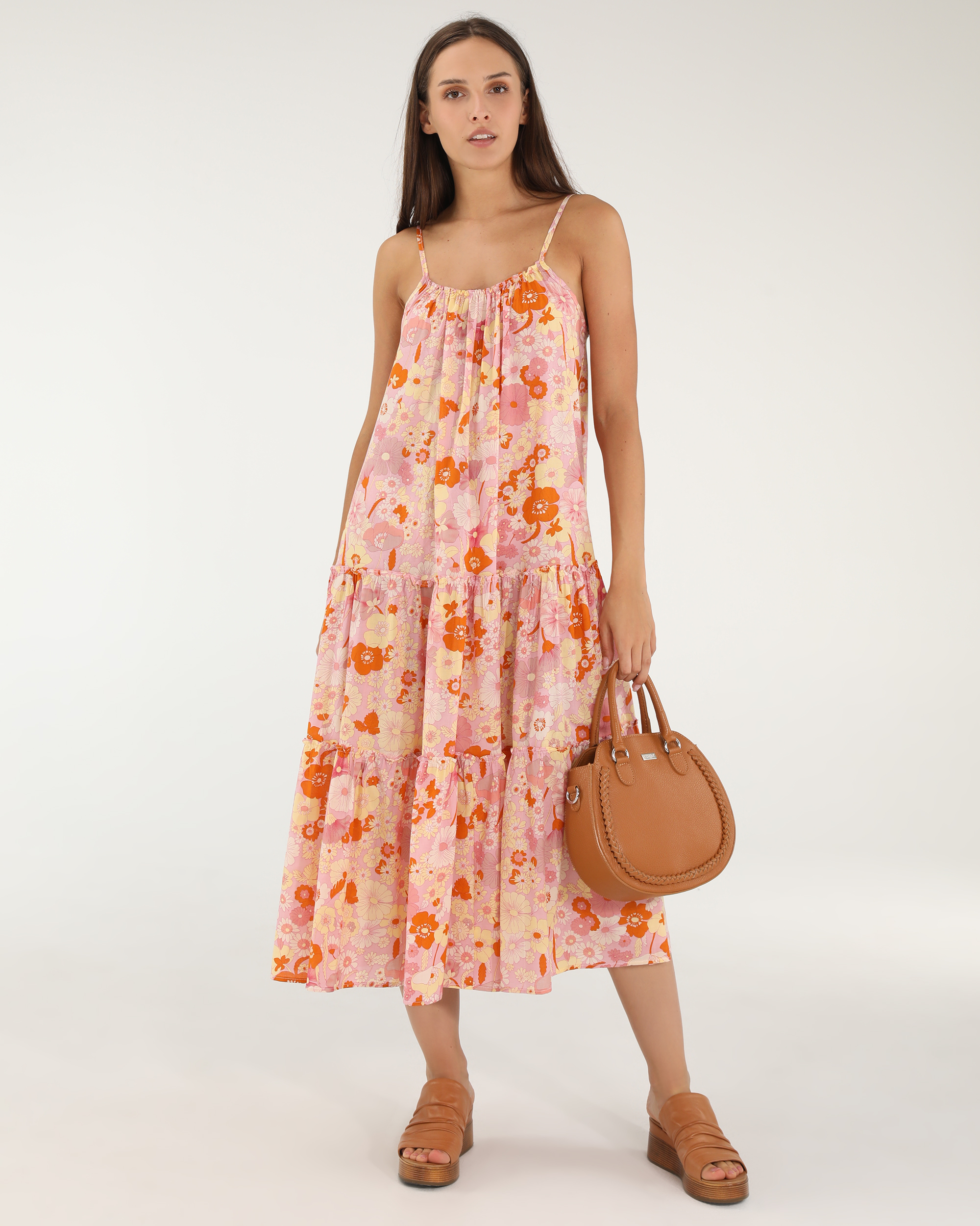 – wzór w delikatne kwiaty Wymiary dla rozmiaru uniwersalnego: Długość całkowita: 120 cm Szerokość w biuście: 48 cm Modelka ma 175 cm wzrostu i prezentuje rozmiar uniwersalny