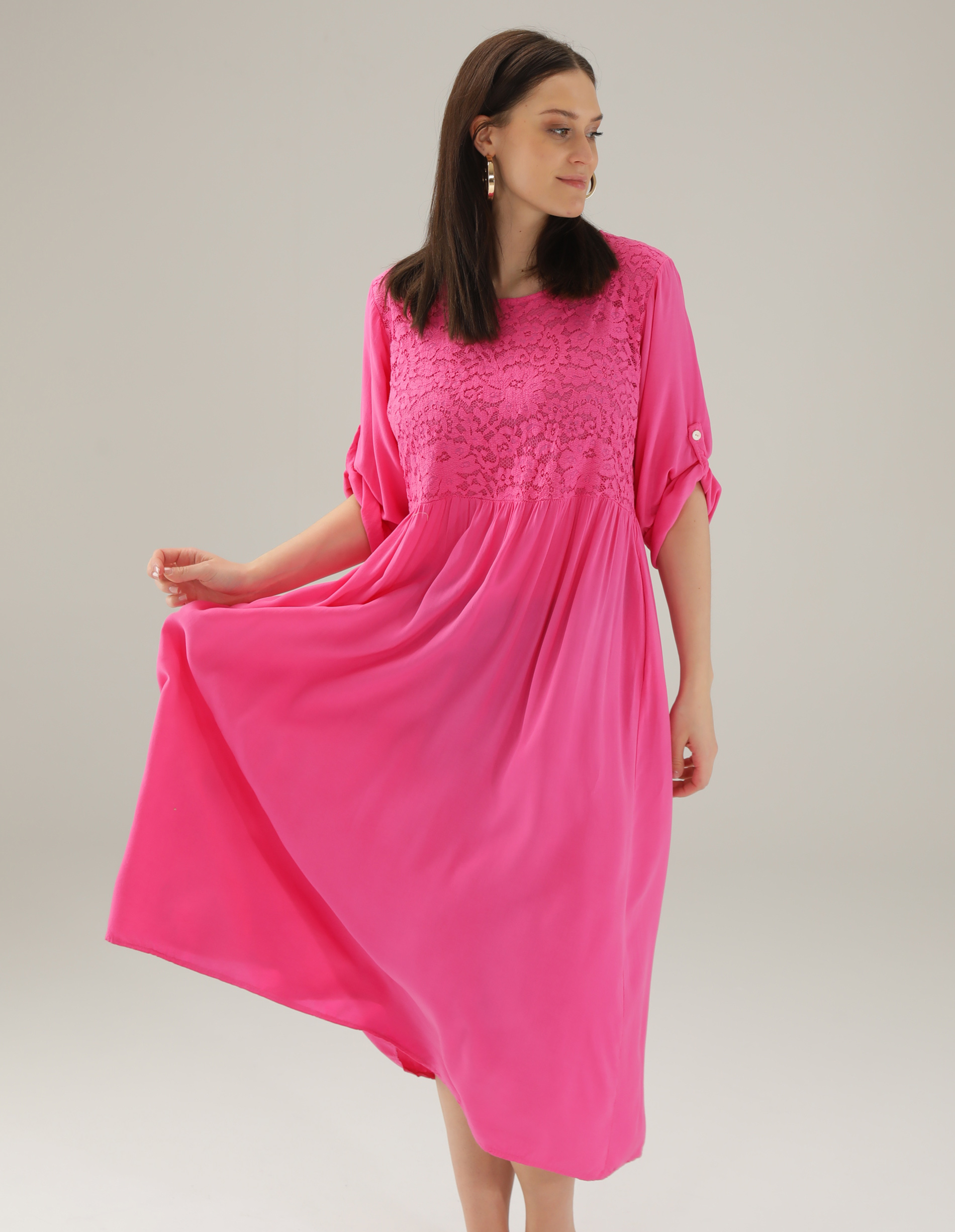 Różowa sukienka z koronką