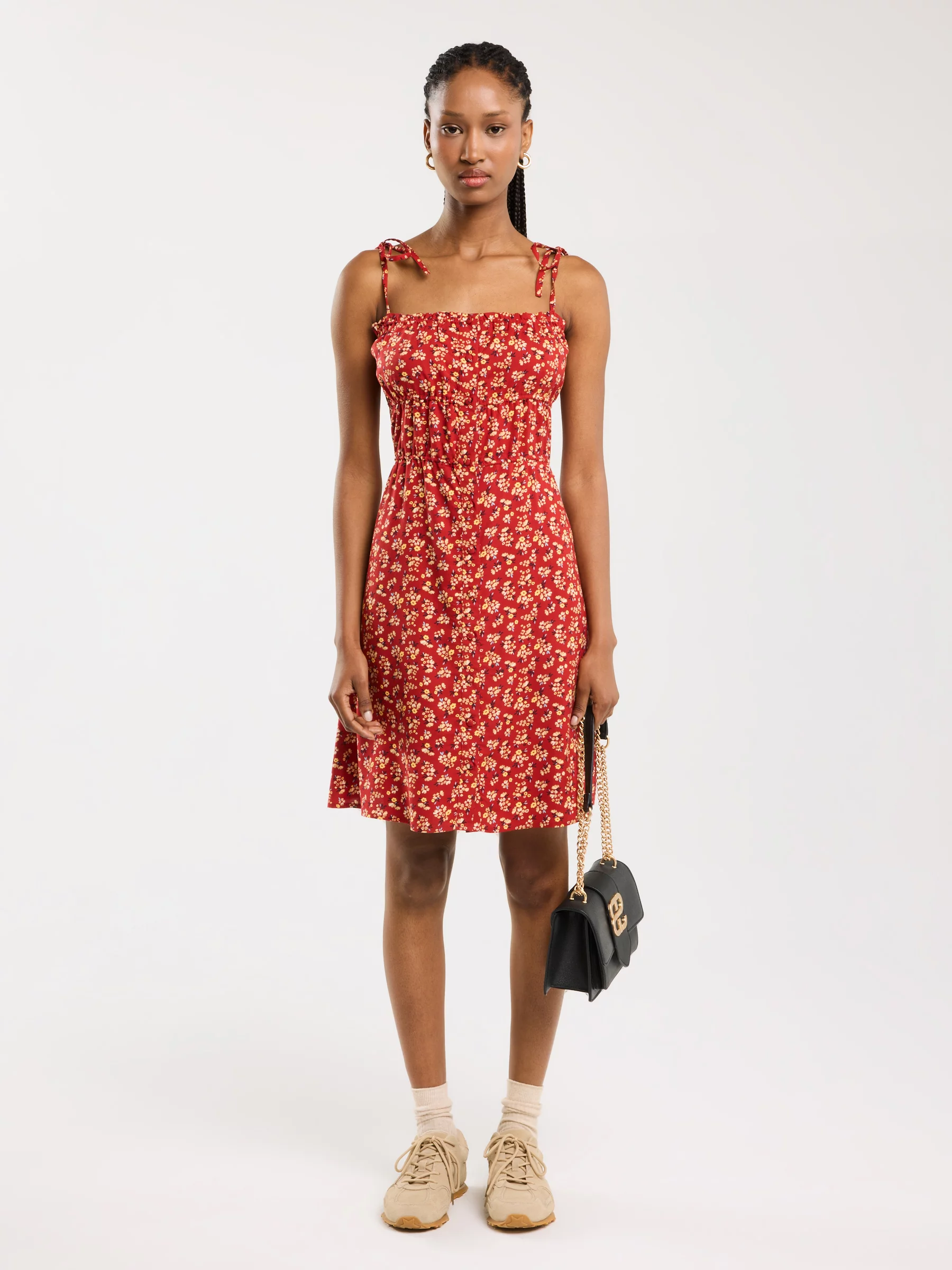 Podoba Ci się Sukienka damska mini z wiskozy z motywem kwiatowym czerwona Casie 603?