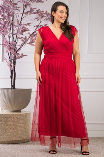 • Tiulowa sukienka maxi plus size MANUELA Piękna sukienka maxi MANUELA stworzona z myślą o krąglejszych, kobiecych kształtach