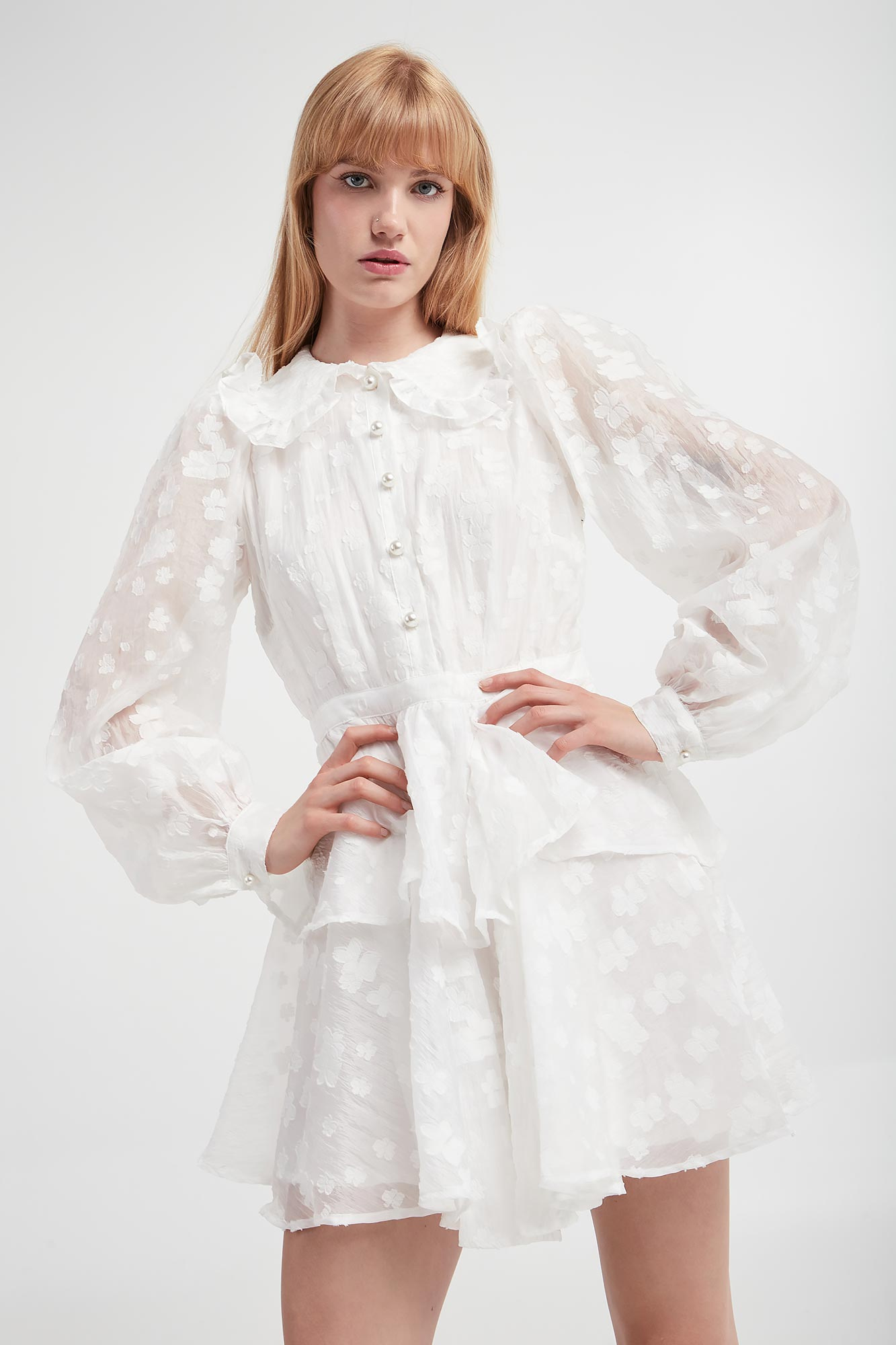 4. Detale – Modna sukienka mini powinna mieć dodatki lub detale, które ją wyróżniają, np. ozdobne guziki, hafty, koronki, marszczenia, falbanki.