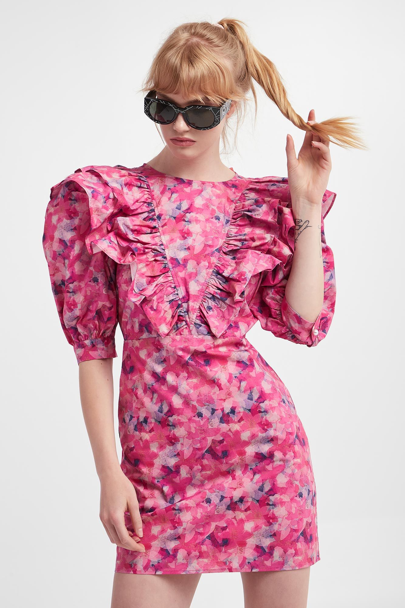 4. Detale – Modna sukienka mini powinna mieć dodatki lub detale, które ją wyróżniają, np. ozdobne guziki, hafty, koronki, marszczenia, falbanki.