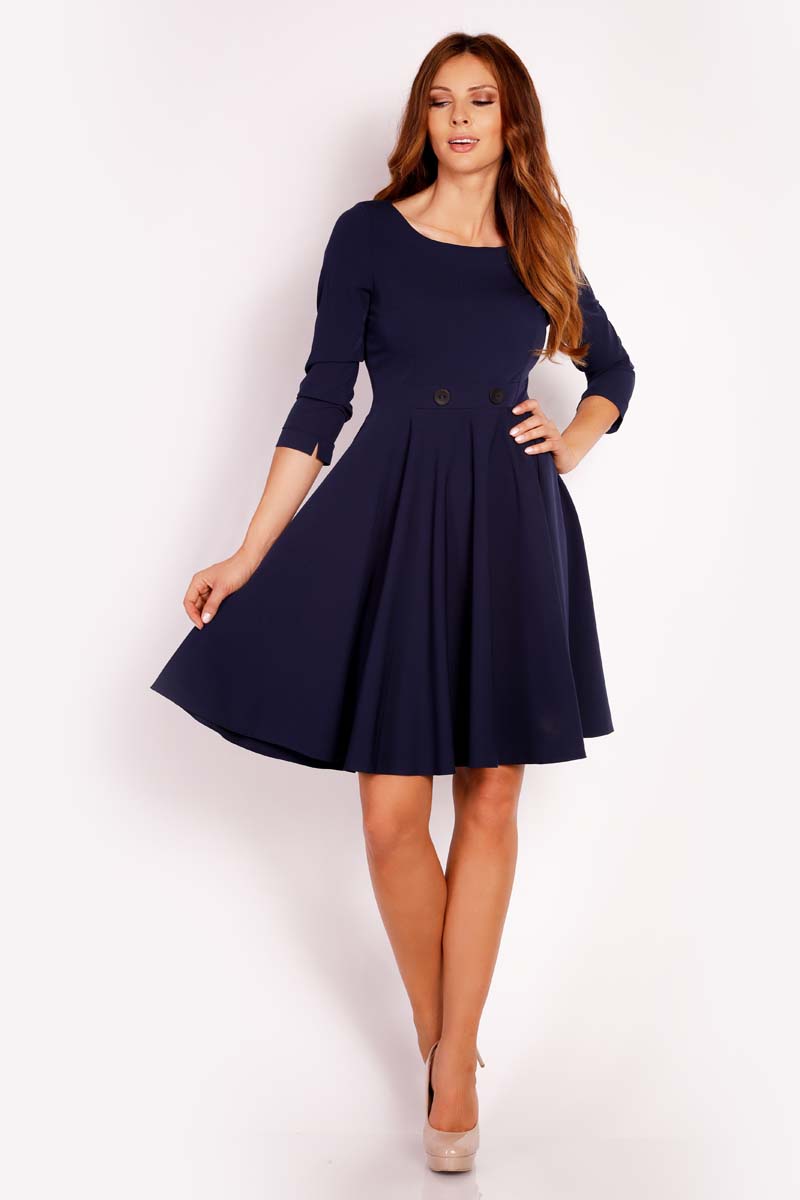 Podoba Ci się Szeroka Granatowa Sukienka Mini z Ozdobnymi Guzikami?