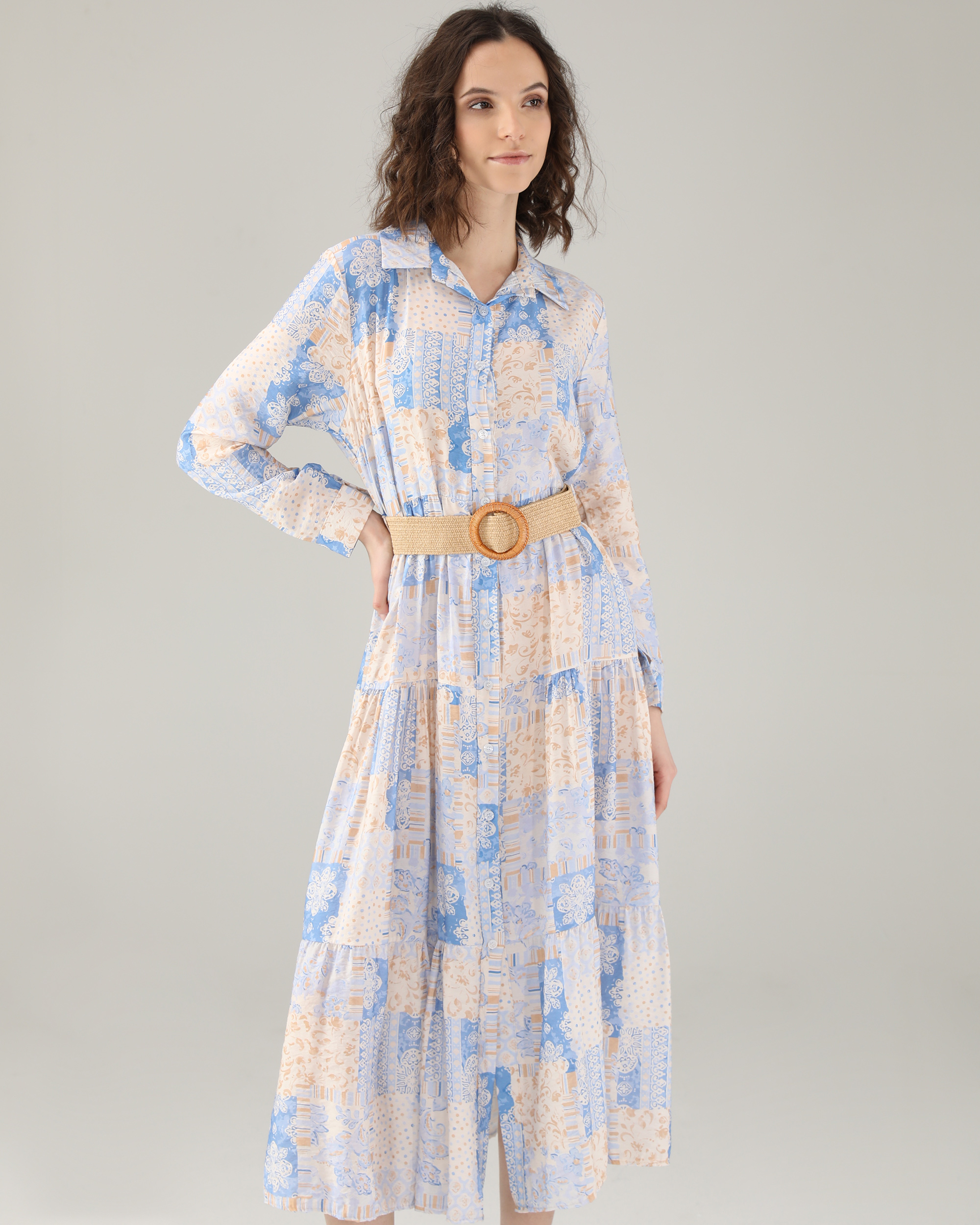 Wzorzysta sukienka z paskiem, cechy i zalety.